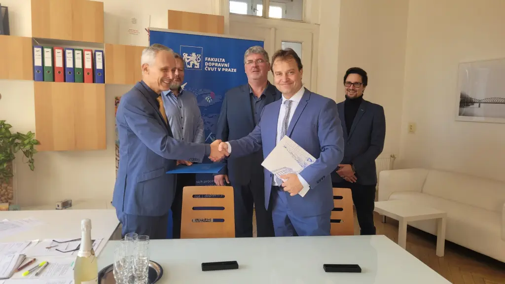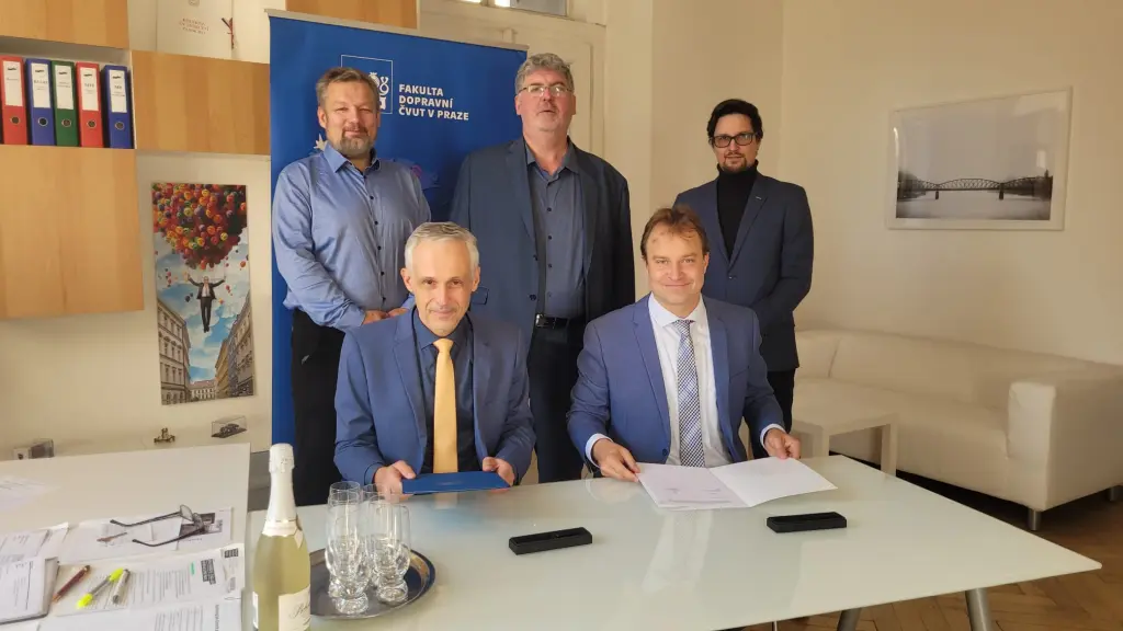 The ceremonial signing was attended by the leadership and representatives of both the Faculty of Transportation Sciences and VOŠ and SPŠD Masná, who expressed their belief that the partnership will bring new opportunities for students and contribute to strengthening the quality of education in the field of transportation.