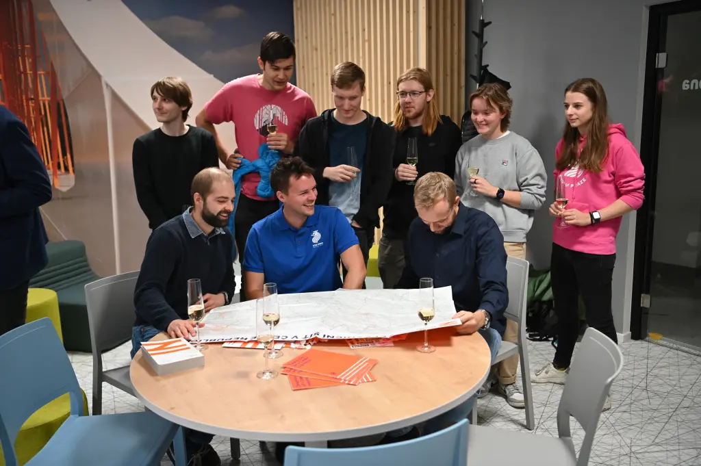 The symbolic ribbon-cutting was performed by the Dean of the Faculty, Ondřej Přibyl, Deputy Director of Správa železnic, Tomáš Čočka, and the Chairman of the student club eFDrive, Martin Štekl, officially handing the space over to students for use.